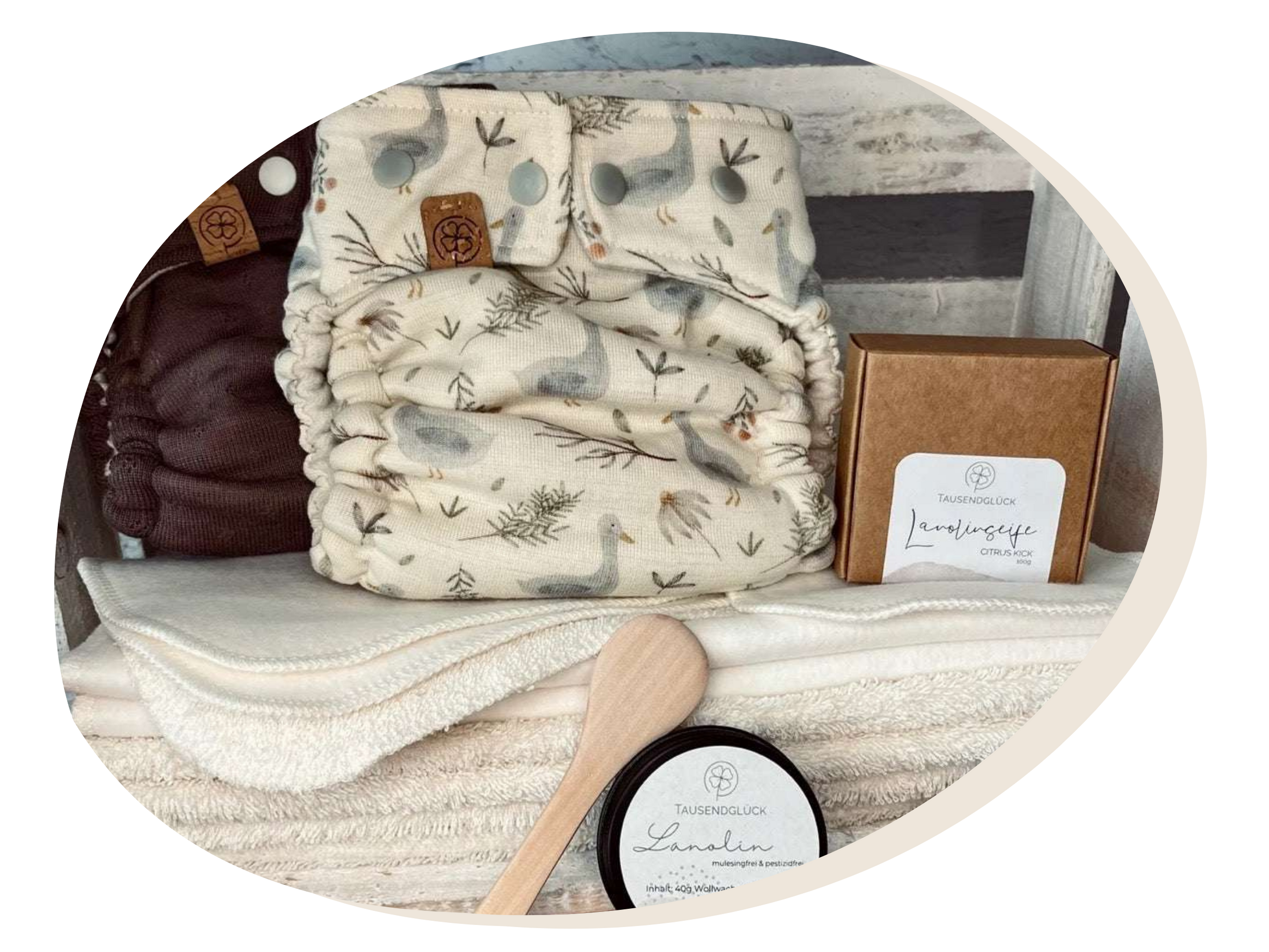 Ergänzt durch natürliches Saugmaterial und liebevoll ausgewähltes Zubehör wird Wickeln mit Wollwindeln zu einem Gefühl von Wärme, Geborgenheit und Nachhaltigkeit.
