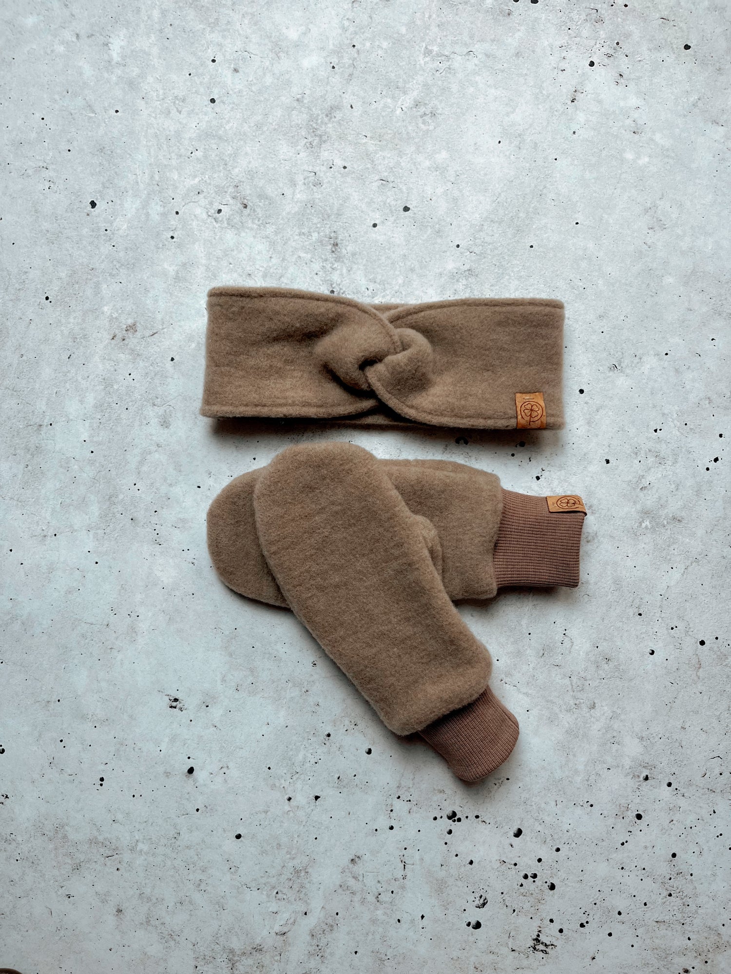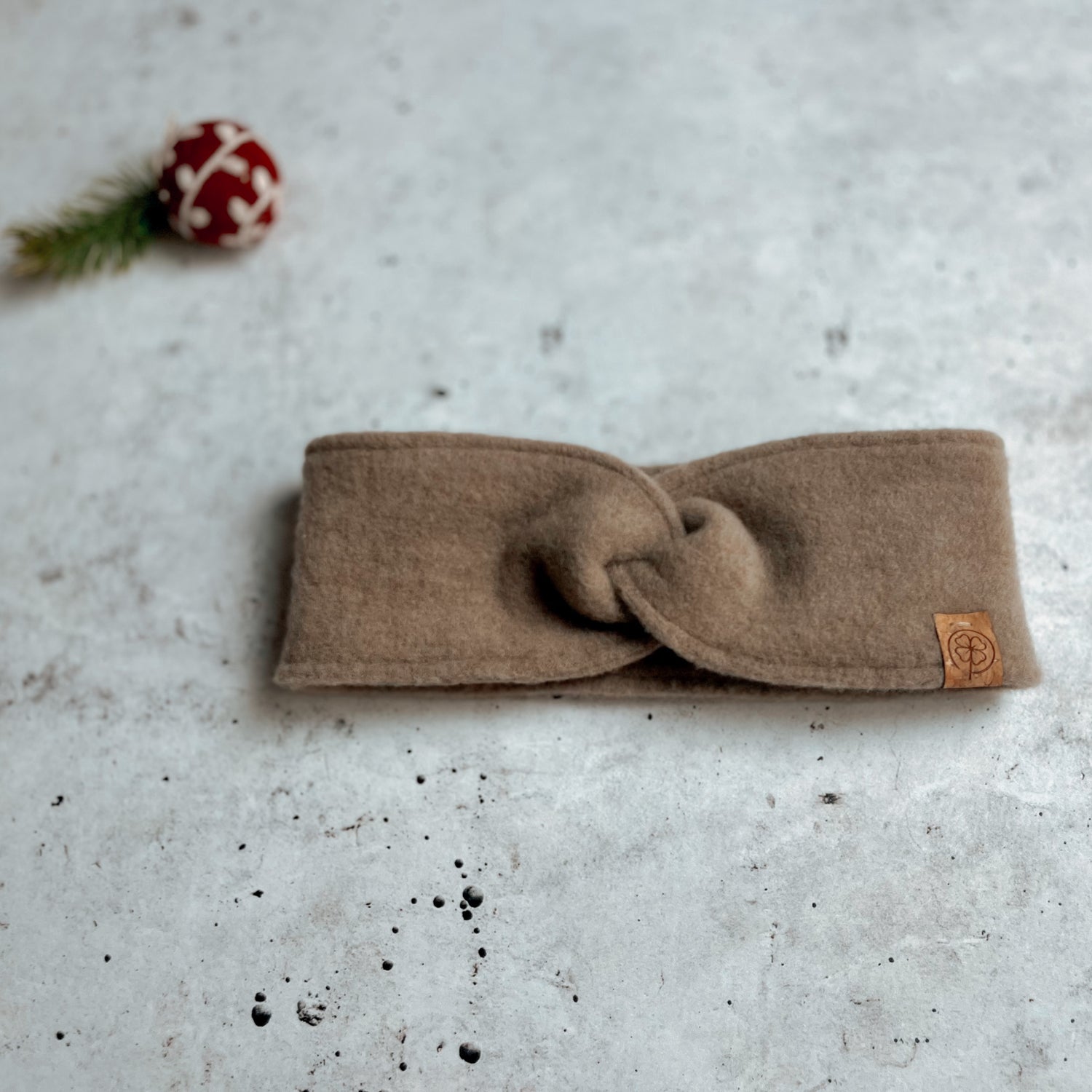 Das kuschelige Stirnband „Glücks-Band“ aus zwei Lagen weichem Merinowollfleece, wärmt die Ohren deines Liebling im Herbst und Winter.