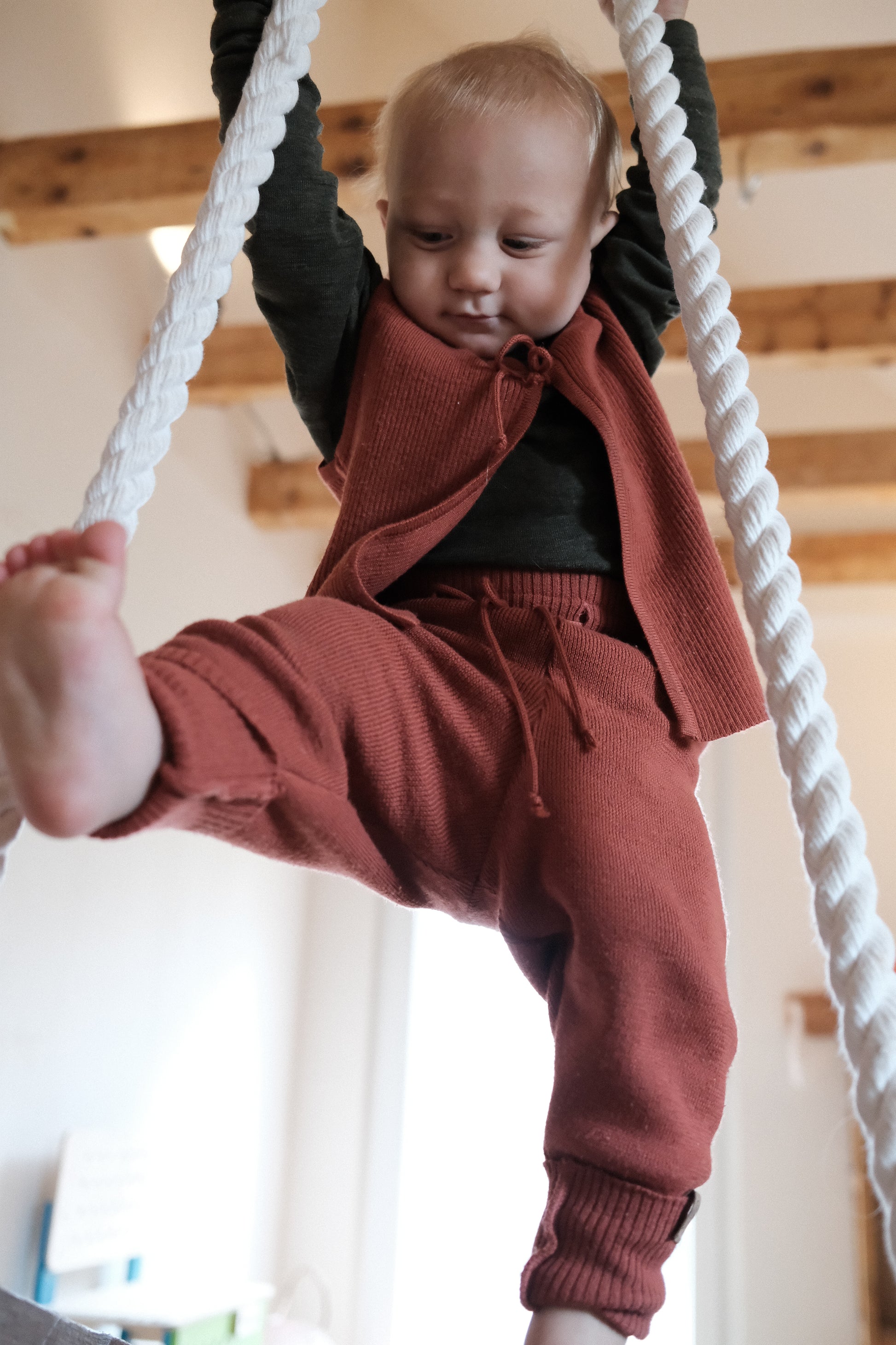 - Mitwachsend durch elastischen Strick & flexibles Bindeband