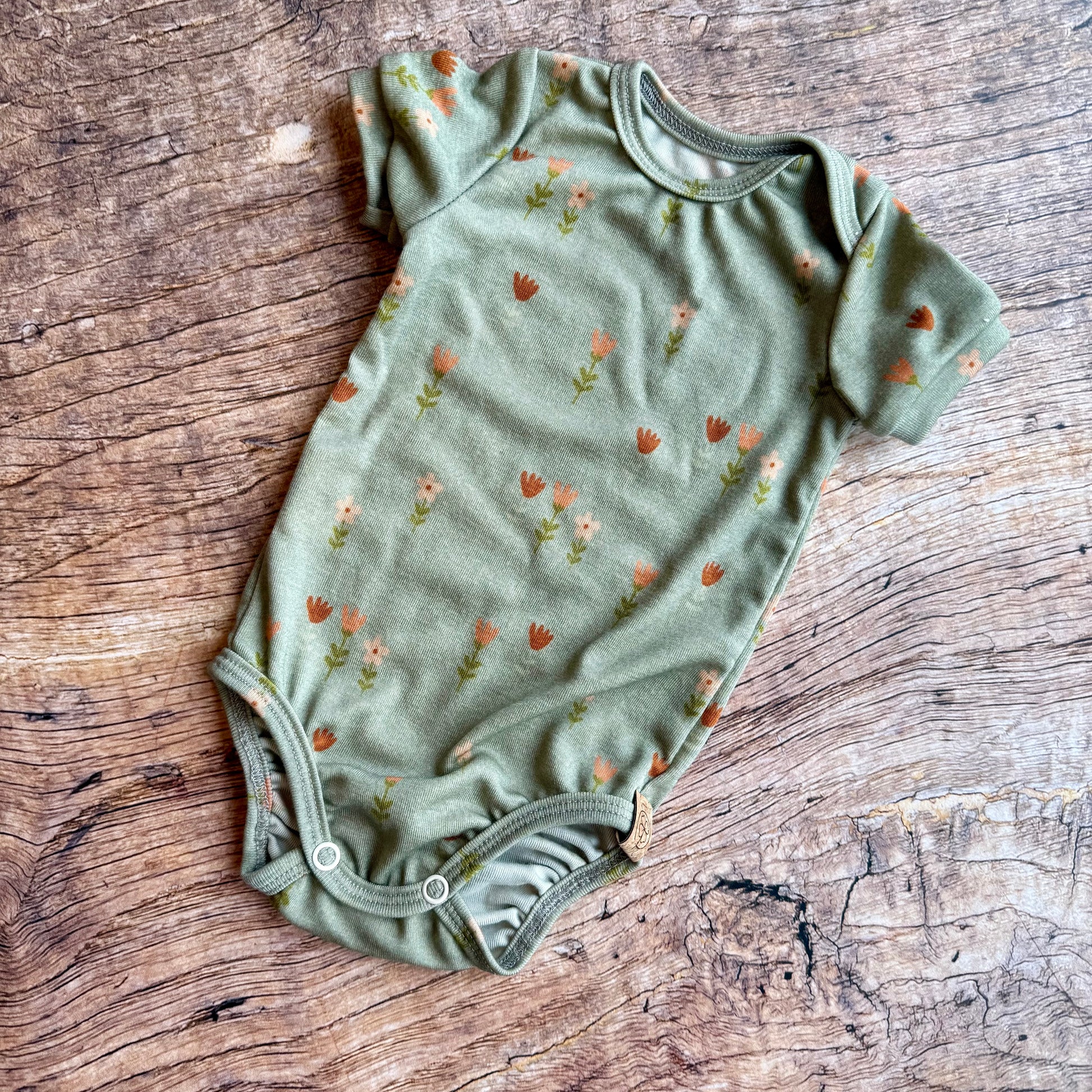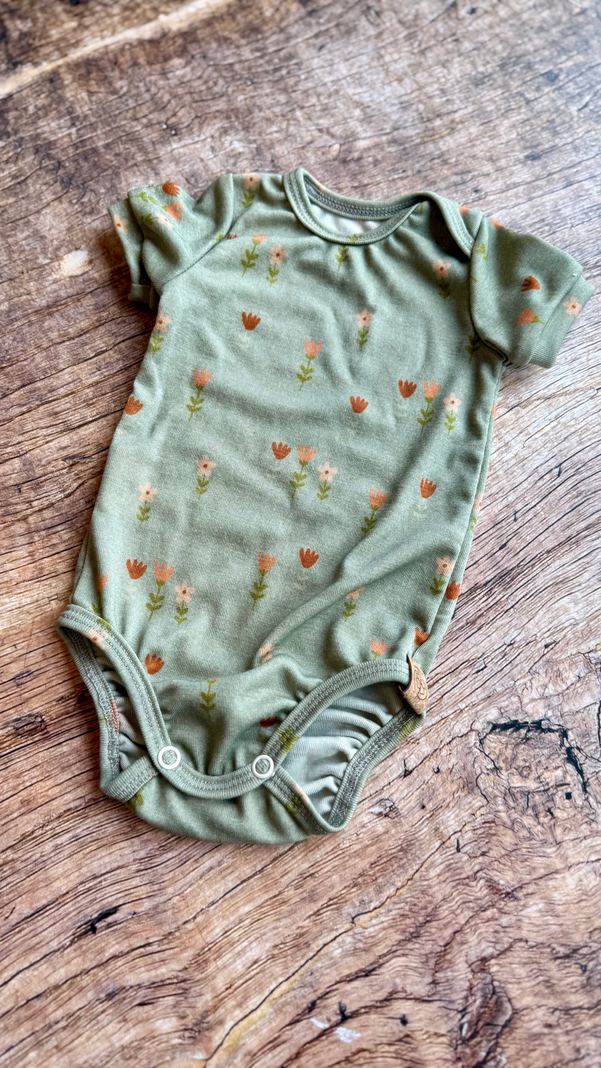 Glücksgriff „Glücks-Body“ aus Wolle/Seide "Tausend Blumen" - 74 kurzarm