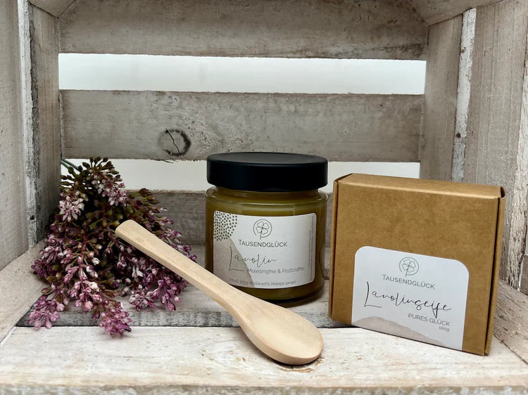 Unsere geruchsneutrale Lanolinseife (100 g) wird in einer regionalen Seifenmanufaktur in Deutschland gesiedet. Sie besteht aus Bio- und mulesingfreien Inhaltsstoffen und pflegt Ihre Haut besonders schonend.