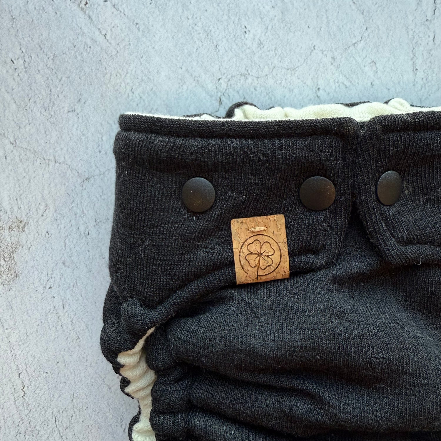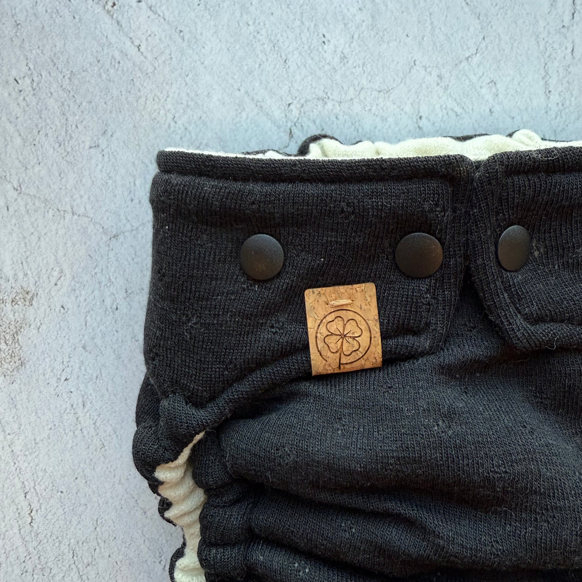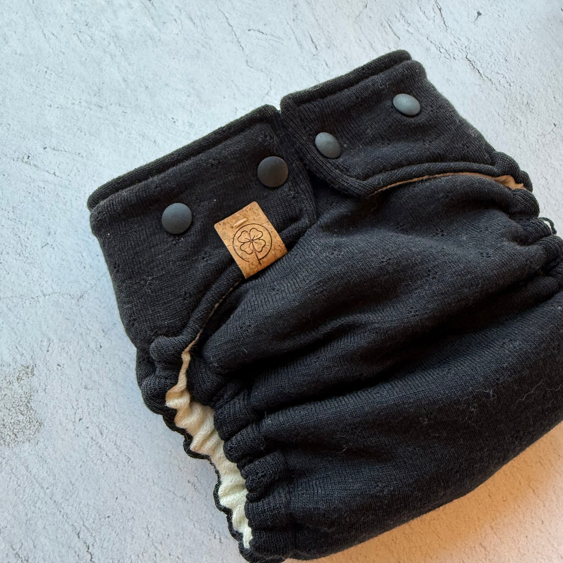 Mitternachtsglück ist die elegante Ajour-Wollwindel für Eltern, die zeitloses Design mit natürlicher Funktion verbinden möchten.