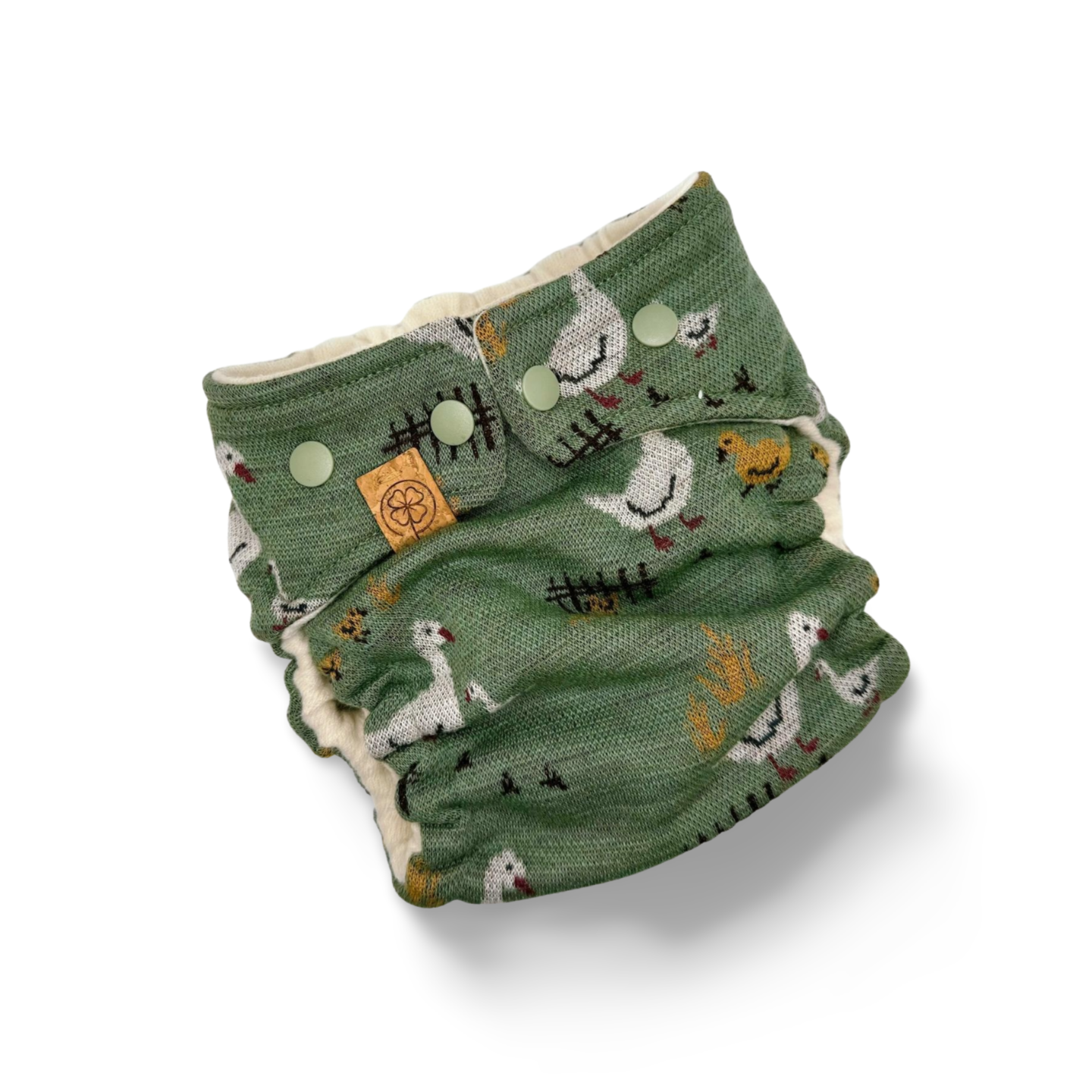 Bitte wasche die Wollwindel "Gänseglück" vor der ersten Verwendung mit speziellem Wollwaschmittel in Handwäsche. Nach dem Trocknen muss sie mit Wollfett/Lanolin behandelt werden, um eine dichte Überhose zu erhalten. Damit die Wollwindel dauerhaft dicht ist und du lange Freude an ihr hast, ist alle paar Wochen ein Auffrischen der Überhose notwendig. Dazu wäscht und fettest du sie einfach erneut.